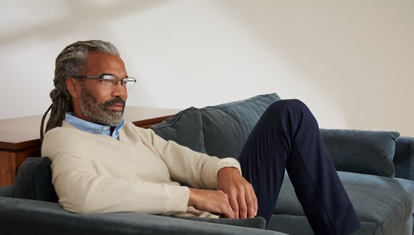 Style G5061, pictured above, is a classic, modified rectangle frame made of solid and crystal acetate frame fronts. Offered in black, plum, and merlot in sizes 54 and 57, the understated and easy-to-wear frames are complemented by watercolor-inspired temples and colored crystal stones.