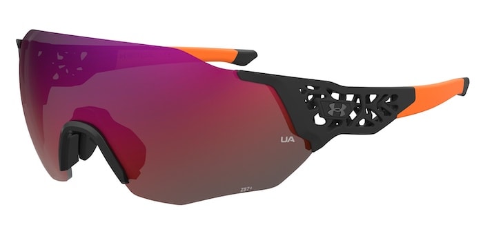 Pictured above in matte black with orange temples and infrared mirror lenses, the UA Next Level features a shield with an injected nose bridge, equipped with the company’s ArmourGrip nosepads for comfort and adjustability. The two other available colorways are matte lime with matte black temples and emerald mirror lenses, and matte black with matte pitch gray temples and blue lenses.