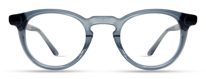 Billie is a panto shape with polished edges and eye-shape beveling, pictured above in soft, crystal acetate—available in black, yellow tortoise, crystal, and blue.
