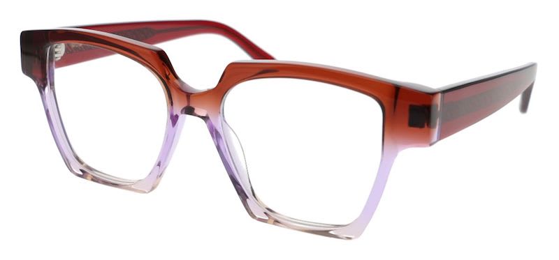 The Ivetta is a petite-fit acetate frame flaunting a striking, angular cat-eye design with visible core wire in the temples—available in lilac transparent, ocean-blue milky, champagne milky, and aubergine transparent.