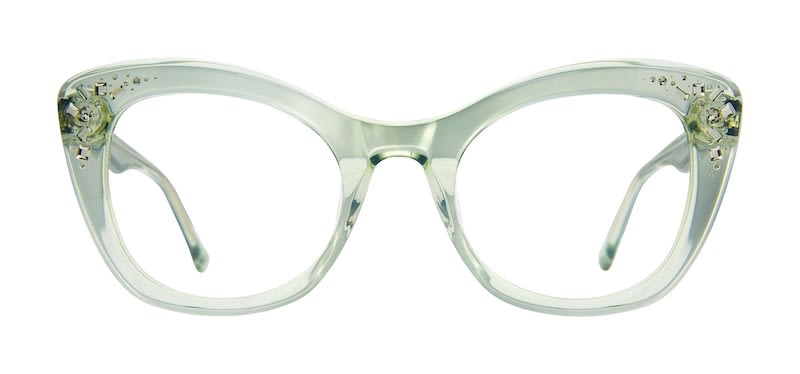 The Shimmer 46, pictured above, flaunts a classic cat-eye silhouette with crystal embellishments along the brow—available in black, blue, jade, and wine.