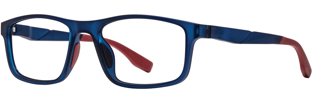 Pictured above, the MRX 108 is an optical style featuring a classic square silhouette crafted from TR-90—available in black fade and navy/red.