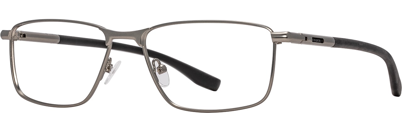 The MRX-102 is an optical style with a rectangular front, crafted from metal with TR-90 temples—available in midnight and silver/black.