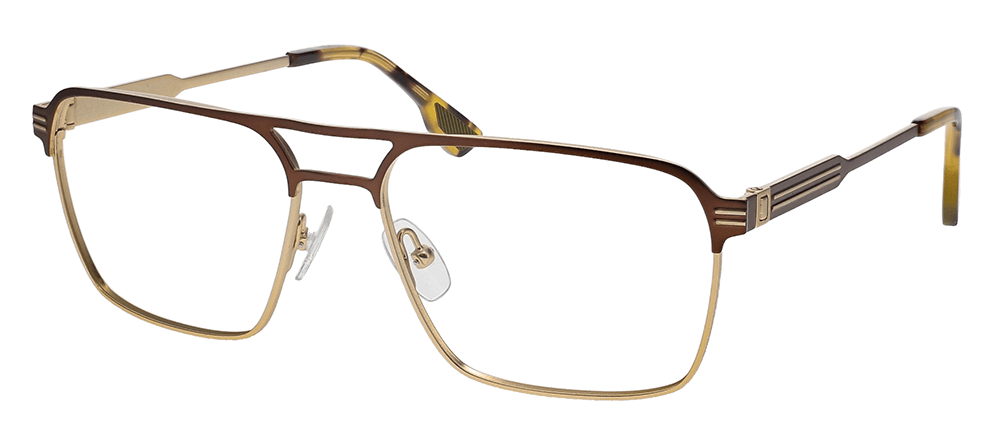 Pictured above, the Ashen is a double-bridge navigator optical style crafted from stainless steel, featuring two-tone color plating on the front and special hinges—available in black gray and brown gold.