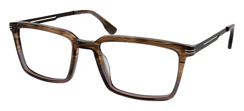 The Cooper is a classic rectangular optical style with acetate fade colorations, titanium temples, and leaf spring hinges—available in gray horn fade and brown horn fade.