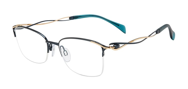 The Menuet (XL2189) is a semi-rimless classic square style with two twisting lines for the temples, designed to evoke a couple “dancing gracefully on ‘Menuet’ melody”—available in gray, teal, and rose gold.