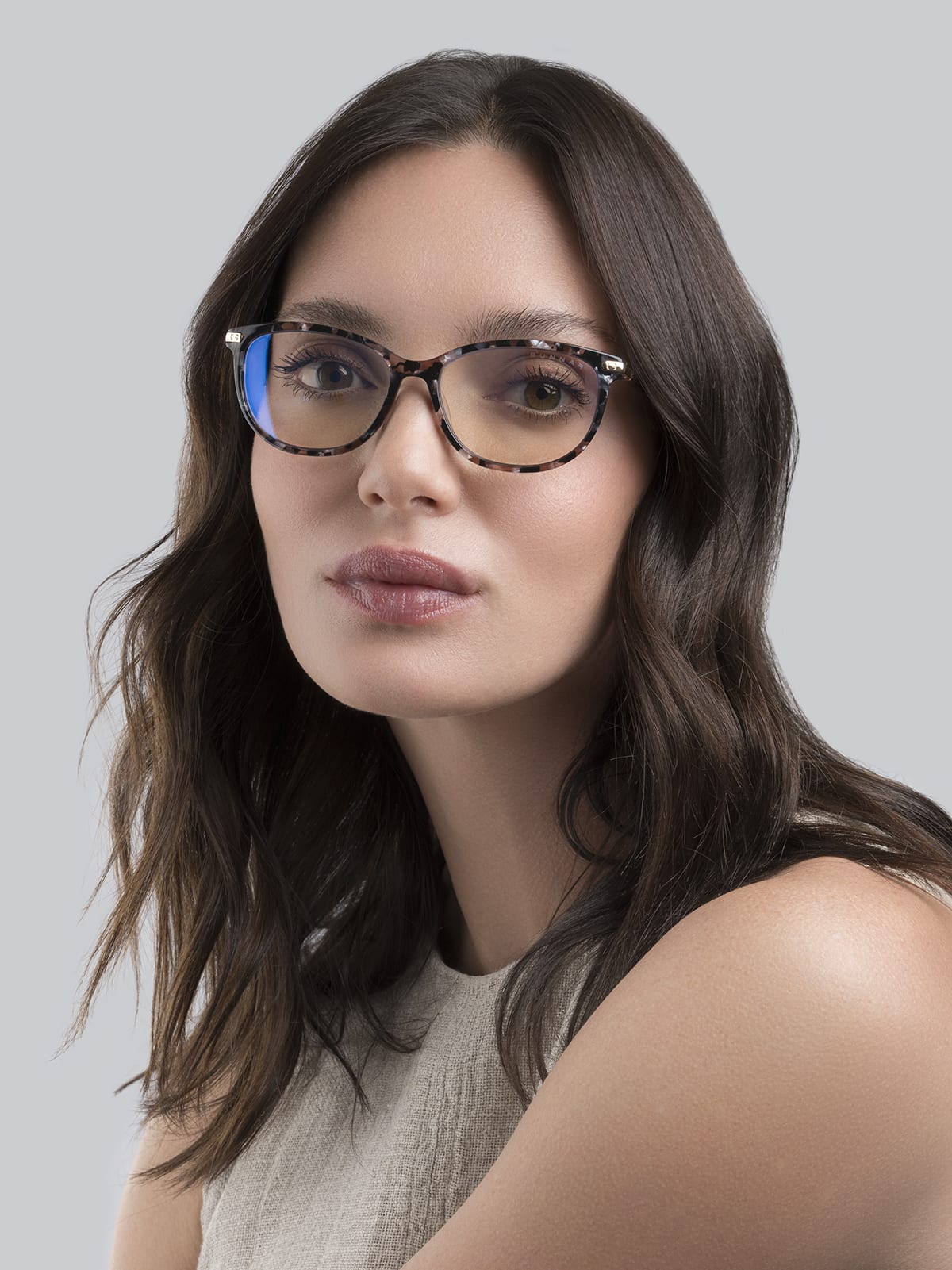 The Ingrid flaunts a classic cat-eye silhouette with metal embellishments on the temple fronts.