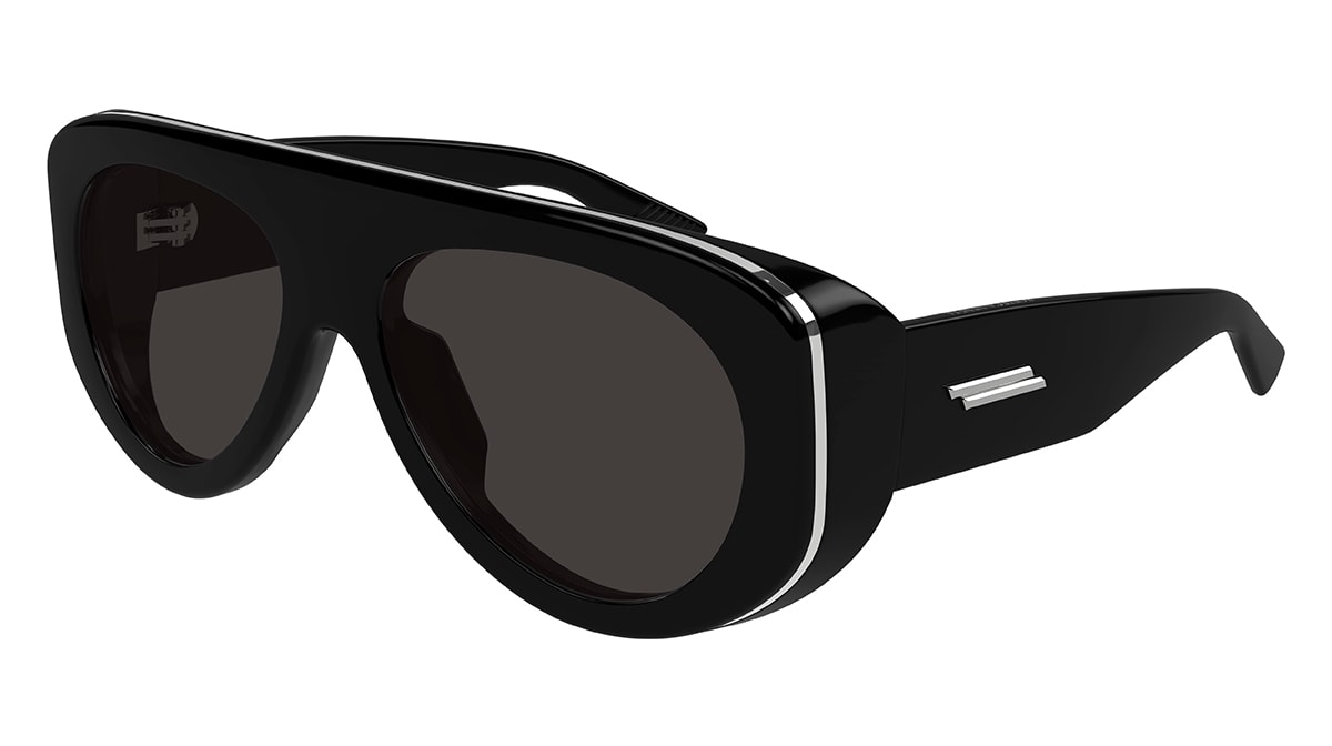 Pictured here, the BV1362S is an après-ski oversized pilot style influenced by 1950s eyewear, featuring a bold front, metal rims around the lenses, and side spoilers.