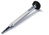 Easy out. Another method is using an "easy out," which is available in three different diameters for different sized screws. The easy out fits in a standard screwdriver handle, but has four points connected by knife-like edges. To use the easy out, hold the handle firmly in the palm of your hand and rock the sharp edges across the screw while pushing down. This cuts into the screw, and if you keep the pressure on while turning counterclockwise, you can sometimes back out a screw. This method rarely works without the hot oil treatment. Screw-slotting file. Lastly, with the piece of screw protruding, you can carefully cut a slot into the piece with a screw-slotting file. This is a very sharp-edged file that looks like a knife blade. It is critical to saw back and forth in the exact center of the screw. To start, you may only want to saw in a back stroke until the slot is well established. You should use a small bladed screwdriver to remove the broken piece. Drilling. This is usually considered a last resort unless you become quite skilled. As with all methods, the hot oil treatment makes things easier. You should select a drill bit that is smaller than the threaded portion of the screw. For most eyewire and temple screws, a #65 drill will suffice. When you begin to drill, look to see if there are any dimples in the end of the piece. If so, use the dimple as a pilot to drill exactly through the center of the screw. Very often a lubricated screw will spin out quickly, negating the further use of the drill. This is why the drill should be smaller than the screw-so it will preserve threads. If you drill through the center of the screw and it does not spin out, you can use an extra small reamer to put through the screw and then rotate it out. If the reamer rotates without turning the screw, try to jam it in a little further in order to cut into the inside of the hole. Hand chuck or Dremel tool. When drilling metal, many people try to use a Dremel(r) tool to turn the drill bit. This is probably not the best choice since a Dremel tool spins in excess of 20,000 RPM, which is much too fast to drill metal using a standard drill bit. A flexible shaft hand chuck is a much better choice since it rotates much slower and has more power at slow speeds. If a Dremel tool is all you have, you may want to investigate using round dental burrs. These are designed to be used at fast speeds, but you will need to drill patiently since they remove only a little metal at a time. You can also burn up a bit as easily as a drill at high speed and heavy pressure. Dental burrs can also stray off center easily, so hold on. Punching out. There is one last resort if all else fails. Broken screws can be punched out with either punch pliers or a staking set. There is, however, a great risk of pushing too hard and expanding the barrels to the point of breaking. If your drill strays off center and you've drilled completely through-only to find half the screw still in the hinge barrels-you will need to carefully coax it out with this method. This is the time you will need those extra fat self-tapping screws. They are a much better alternative to a nut and bolt fix, and it usually stays tight. Speaking of staying power, isn't it about time we eliminated the problem of loose screws altogether? If you really want to dispense the ultimate in eyewear, take a moment to lock the screws in so the patient will never have to be concerned. It's easily done with Loctite(r), silicone, and many other methods. The major brands of self-tapping screws even come with coatings that gum up the hinge to keep screws tight and temples from flopping! To keep the shiny screw heads from showing against a muted colored frame, use a permanent marker or jewelry antiquing to hide them. Giving your customers the best fix available, and keeping the appearance nice, will keep them coming back for more.. EB