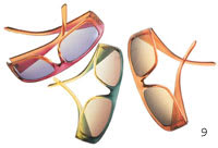 The Mix. A few other trends became evident at the show, in addition to those described by the MIDO Trendbook. In keeping with the season's clothing trends, animal prints were a big hit. Even leather and python appeared on some frames. On a more feminine and glamorous note, rhinestones were dominant in some frame lines. Sparkle "car colors" were also apparent and added a hint of uniqueness to simple frame designs. Additionally, rubberized and "sueded" zyls were popular. Rimless frames were important, and the trends showed that size does matter-small seems to be a trend of the past as almost all trendy frame styles are heading in a larger direction. With all of this new fashion, there is truly something for everyone. And this arrangement of offerings in the optical market is sure to perk up the look, atmosphere, and sales of most optical dispensaries, whether here or abroad. EB