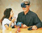 A NUVISION Keeler Instruments, Inc.'s NuVision is a new head-mounted system that offers high magnification and image enhancement. The lightweight visor contains a miniature video camera and optical system. The camera projects an image onto two small screens on the inside of the visor, the equivalent of watching a 62" wide-screen TV from only six feet away. NuVision is compatible with computers, televisions, video cameras, and DVDs. The user can easily switch between color and b&w. The unit can focus from six inches to optical infinity and provides up to 10x magnification. For more information, call 800-523-5620.