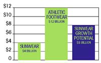 Here�s a comparison of the athletic footwear and sunwear industry�s total annual sales for 2000. If sport sunwear was marketed the same way as athletic footwear, it could grow to be just as large.