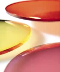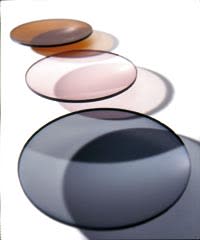 Here the dispenser's choices are somewhat limited, depending on the patient's lifestyle. Many outdoor activities involve potential risk from flying objects or the activities of an active lifestyle, so polycarbonate will be the material of choice in most cases. Poly has a relatively high index (1.59), providing cosmetic advantages to myopes, as well. Lens colors can be applied to any of the available plastic substrates so the choices are unlimited. With glass, colors other than gray or brown often require a color coating, but even here, there is a range of choices available. Color is applied to glass as a thin film coating, similar to the application of AR.