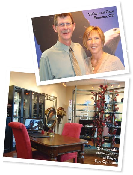 Not to mention a whole new look, higher-end product assortment, and targeted merchandising strategies. All these changes, including the move to a single-level, street-front location, have been a boon to business. "We get a lot of drive-by traffic now and we have had a lot of walk-ins and new patients," says Vicky Scearce, Dr. Scearce's wife and the practice's optometric technician and office manager.