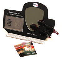 Pyramid Display: Kit holds six different polarized lorgnettes. Featured colors are: Grey C, brown C, grey A, hi-contrast amber, and two new polarized colors-apple green and sky blue. Includes $5 coupons for Fusion I or Fusion II orders and an availability booklet. $35, with $35 in discount coupons. 3. Vision-Ease Lens