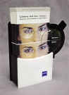 AR Display: Made from durable plastic, this demonstrator includes 100 High-Tech Coating "Take Ones." The half coated/half uncoated Zeiss lens is removable for versatility. Its dual purpose of literature availability and visual demonstration effectively communicates the value of Zeiss AR Coatings. Contact Zeiss lab for cost information.