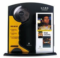 Go Premium Lens Center: Contains rotating display with eight in-frame samples, literature, lens samples, E-Clip, and Colgate frame, as well as 100 lens menus, 30 UV brochures, and 11 small sign holders. Complete with refund vouchers to completely refund display cost. $460. 3. Western Optical Supply (800-423-3294, www.westernoptical.com) Previews 3-D Demonstrator: Kit has four disks, but 22 disks demonstrating 22 lens products are available. A wide assortment of 3-D disks is available to demonstrate a variety of specialty lenses under varying outdoor lighting conditions. Polarized lenses, photochromic, sun and sport tints, as well as a selection of other specialty lenses, are featured. $115. |