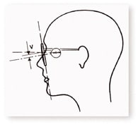 Figure 4 - An alternative method for determining vertical O.C. height is to have the patient raise his head until lenses are vertical to the floor. Mark pupil center and request that height for the O.C. "Rule of Tilt" formula is not required. |