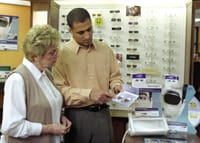 Explain the product. To justify the price of higher-end product to customers, dispensers need to focus on outlining the special features and benefits of that item. "We steer them to the better product first and discuss the features and benefits with them," says Harrison. "Eyewear is a major expenditure for people, so we show them what is newest and why it costs more"