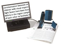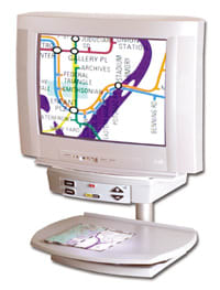 The PocketViewer utilizes a miniature video camera to transfer and enlarge text and images. Images can appear in high contrast black on white, or with the