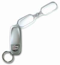 Keyring Readers are polycarbonate in 1.50, 2.00, and 2.50 powers. Designed to step in when normal readers are inconvenient, the glasses fold out from a keyring attachment, available in metallic black or metallic silver.