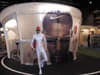 | 11. Face á Face's newly designed booth; 12. Two-tone sunwear was seen throughout the showfloor; 13. A Marchon model poses in front of the Nike booth made from recycled sneaker materials; 14. There were 35,737 meters of exhibit space at Silmo, an increase of six percent from 2003 | ||||