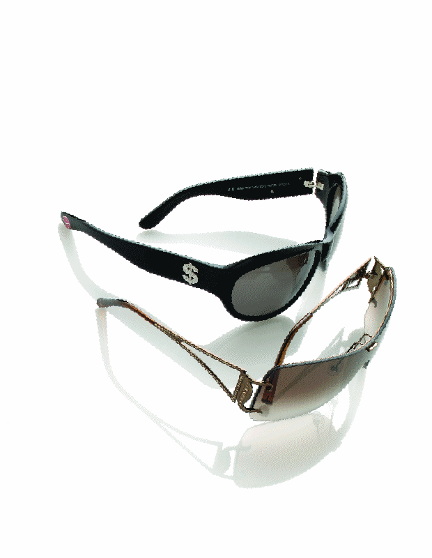 women's eyewear features logos in Swarovski crystals or sophisticated galvanic