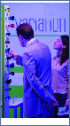 A connecting passageway between two halls, the "Forum des Tendances," played on illusion, light, and perspective to illustrate the styles of the season. Light effects and wall-sized illustrations that seemed to shift with passersby's movements served as a theater for new optical offerings.