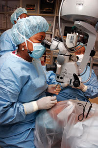 Mildred Olivier, MD, from Chicago teaches local doctors the latest procedure on an ORBIS program in Kingston, Jamaica |