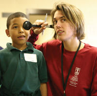 A Luxottica staffer screening students on a Give the Gift of Sight mission |