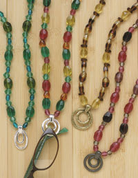 The high end is also getting more involved than ever in eyewear retainers, offering semi-precious stone holders, silver and gold rings and chains, exotic woods, shells, and unique designs that mask the accessory's practical purpose.