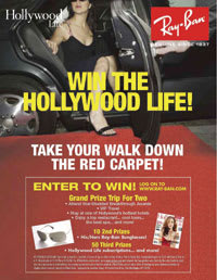 Luxottica has announced the Ray-Ban "Win the Hollywood Life" promotion, which offers a grand prize VIP trip for two to Hollywood. The prize includes VIP tickets to Hollywood Life magazine's Breakthrough Awards, a stay at a premier hotel, plus dining, tours, and spa treatments. In addition, 10 second-prize winners will receive Ray-Ban sunglasses and 50 third-prize winners will receive a one-year subscription to Hollywood Life. Both Ray-Ban eyewear consumers and wholesale customers are eligible to win this contest. Winners will be chosen at random on September 30. For more information, call 800-422-2020.
