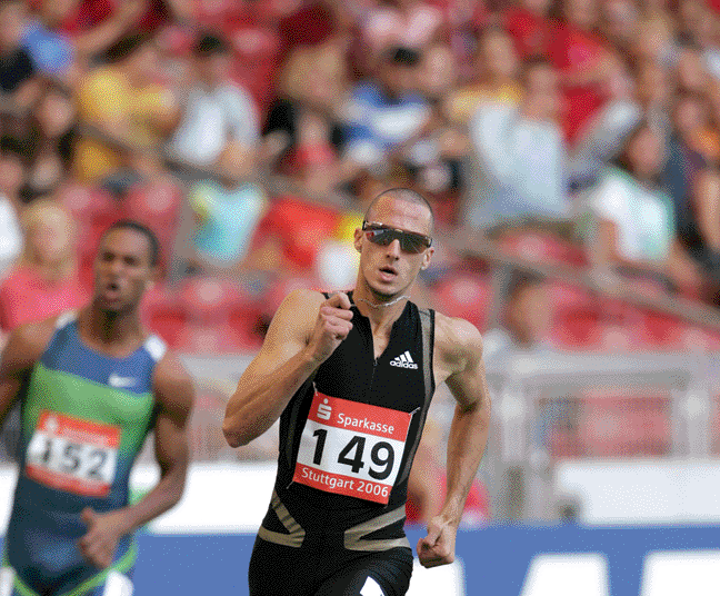 Known for wearing sunglasses for all of his races, top-rated male 400m runner Wariner was chosen by Track and Field News as the male World Athlete of the Year. He won the gold medal in 400 meters the 2004 Summer Olympics in Athens, and a gold medal in the 4x400m with Wariner running the third leg. He is sponsored by adidas.