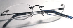 Small eye-size frames with a polished high-power lens can emphasize the polish and make an eyewear statement that some patients may not like. "Polished edges can have an 'ice cube' look that actually draws attention to the lenses," Scott MacLeod observes. "If you and your patient see eyewear as art, polished lenses come off better." |