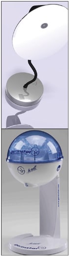 | Mirror, Mirror… Santinelli International has introduced the Digital Mirror, a high-resolution, digital camera that is integrated within a dispensary mirror. The unit and its accompanying software, FashionLab, were both developed by Activisu Solutions. The system captures a digital image of the patient's face, allowing patients to view and customize various lens shapes on the image. Patients receive a photo card of themselves with the finished eyewear. For more information, call 800-644-EDGE. Goodbye Germs Gulden Ophthalmics has introduced the GermControl Touch-less Hand Sanitizing Unit and its companion GermStar Instant Hand Sanitizing Solution. The unit employs an infrared sensor to initiate dispensing of the disinfection solution when hands are positioned at, but not touching, the dispensing nozzle. The unit's touch-less design prevents cross-and re-contamination from occurring. For more information, call 215-884-8105.