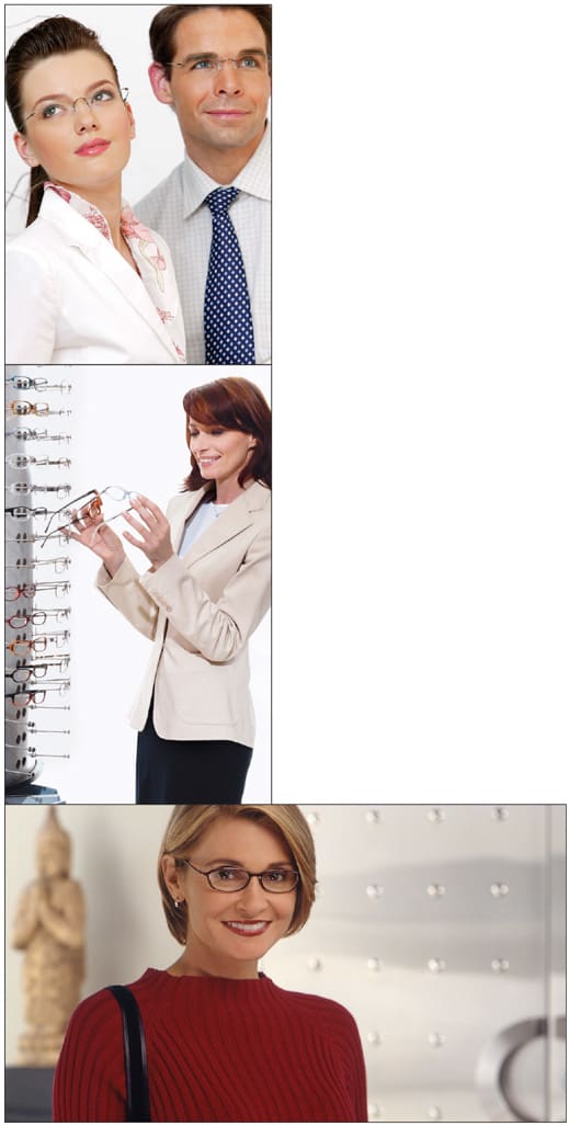 Selecting small frames isn't a problem with short corridor PALs. Images courtesy of, top to bottom: Thai Optical, Carl Zeiss Vision, and Signet Armorlite