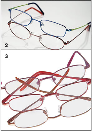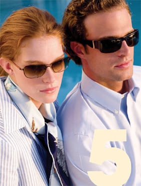 | Luxottica Group is re-launching Brooks Brothers Eyewear. The emphasis will be on vintage styling with 14 new ophthalmic models and seven new sunwear styles. Keyhole bridges enhance the vintage appeal of the collection's acetates. New details include the Golden Fleece logo imprinted on each temple tip and new temple hardware designs integrated into some of the acetate models. Shown are styles BB685S (on man) and BB438S. For more information, call 800-422-2020. |