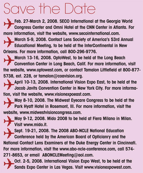 The Carol M. Baldwin Breast Cancer Research Fund honored ClearVision Optical with its 2007 Corporate Supporter Award at a gala event. ClearVision has been a longtime supporter of this fund, and in the spring 2007 the Long Islandbased eyewear manufacturer and distributor collaborated with its licensor, BCBGMAXAZRIA, to create a limited edition pink version of the Ceres sunglass to raise funds for the Carol M. Baldwin Breast Cancer Research Fund. This resulted in a donation of more than $35,000. Visit www.findacure.org