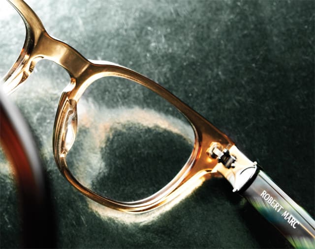| Rx: OD -3.00 sph. OS -3.75 +1.00 × 150 ADD +1.50 Lens Recommendations: Polycarbonate; Trivex or high-index; AR; free-form PALs; edge polish optional; photochromic. With poly, Trivex, or high index, this medium-power Rx would look good and be comfortable in any of these options. AR provides freedom from reflections, edge polished or not, with photochromics for indoor-outdoor performance. Free-form PALs give upmost all-around visual sharpness. Frame Highlights: A not-quite-chunky acetate with a smart retro look and a deep B is great for men or women looking for a classic look with a nice update. The thinner plastic makes the black frames less severe as does the finish and the thoughtful detail touch of the dots on the front and temple. This streamlined frame provides a comfortable, lightweight feel with the substantial look of a weightier style. |