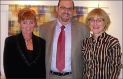 Dr. Harvey and Robin Ohriner (left and center) with designer Jhane Barnes. Ohriner was the winner of Kenmark Group's Jhane Barnes in the City promotion for sales of the designer's eyewear collection