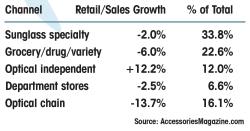 While the biggest chunk of sales occurs in sunglass speciality stores, independent optical shops are seeing the biggest boost in sunwear sales: