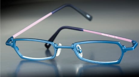 ic! Berlin for Kids frames and components are cut from 0,5 mm, flexible stainless steel. The material is pliable and can be adjusted to a perfect fit. The frames are constructed from just three simple parts: front frame, temple, and a clip which secures the lens. Visit: www.ic-berlin.de