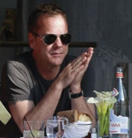 Kiefer Sutherland taking in the fresh air and a snack in Robert Marc style 742 |