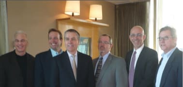 Above (l to r): Carl Bracy of Essilor, Ken Stellmacher of VSP, Barry Barresi, OD, PhD, of the Foundation for Eye Health Awareness, Mike Daley of The Foundation for Eye Health Awareness, John Carrier of Essilor, and Wally Lovejoy of Luxottica