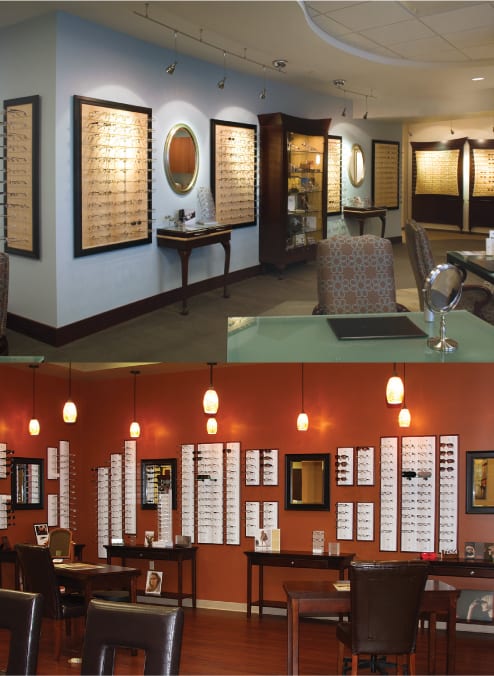 Color trends can make a statement. Top: Image courtesy of Eye Designs; bottom: Image courtesy of Opticaldisplays.com