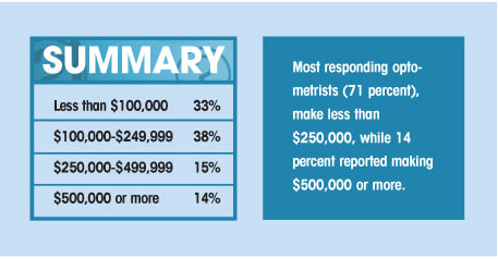 South Atlantic incomes span the spectrum, boasting the largest percentage of optometrists (19 percent) reporting an annual income of $500,000 or more, as well the largest portion of optometrists (42 percent) making less than $100,000.