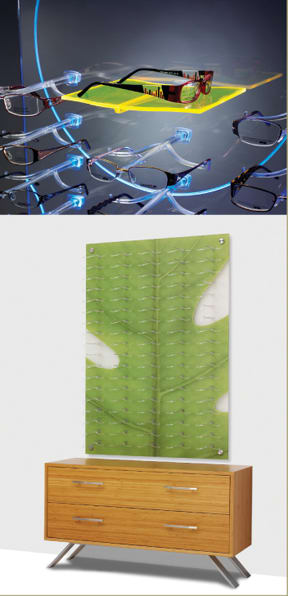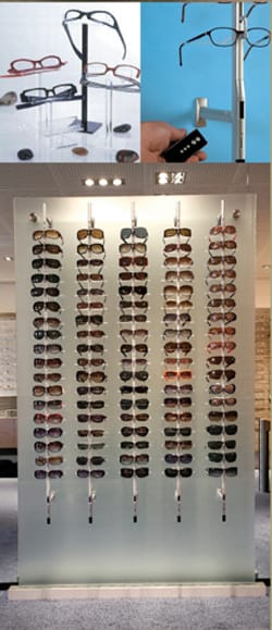 4 Since interaction comes with risks, state-of-the-art safety features that are convenient and discreet are also in style for store décor. “Our remote controlled locking display rods allow you to open up a rack of frames to be viewed; and then 60 seconds later, the display relocks itself,” says Jan Ennis, president of Ennco Display Systems.