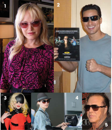 1. Swedish-born actress Malin Akerman glams it up in Prada's PR 19 from Prada's Postcards collection by Luxottica. Akerman, who burst onto the acting scene in HBO's “The Comeback” and starred in a slew of films, including “27 Dresses,” is also the lead singer of the band, the Petalstones. 2. “Extra” host Mario Lopez is wearing Rudy Project's Sunbays. The “Saved By the Bell” alum recently announced he is expecting his first child with his girlfriend, actress Courtney Mazza. 3. Known for her futuristic outfits that usually include equally progressive eyewear, singer Lady Gaga is wearing Yuri, limited edition, by Mykita/Romain Kremer. The singer has extended her Monster Ball World tour through 2011. 4. “Inglourious Basterds” star Diane Kruger rocks Jason Wu's Seberg style sunglass by Modo. Before rising to fame in films like “Troy” and “National Treasure,” Kruger was an aspiring ballerina. 5. The eccentric Mickey Rourke tops off his look in Christian Roth style 14302, a.k.a. NEO-GEO, at the “Ironman II” premiere in Hollywood. Rourke's starring role in 2008's “The Wrestler” earned him the Best Actor win from British Academy Film and Television Arts. |