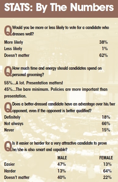 The Style vs. Substance survey, recently conducted by the Huffington Post and Weatherproof, an apparel company, found that almost four out of 10 of those surveyed were more likely to vote for a well-dressed candidate. Though still the minority, almost 20 percent said a better-dressed candidate had a distinct advantage over their opponent, even if the opponent is better qualified.