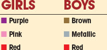 Of the 75 kids we surveyed, almost 50 of them had definite ideas about the color of frames they liked best. The hands-down favorite among the younger girls—the color purple. The only color both sexes seemed to like, though, was red. And, perhaps not surprisingly, of those actually wearing prescription glasses, very few were sporting frames in the color they said they liked most. Can you spell p-a-r-e-n-t-a-l p-r-e-s-s-u-r-e?